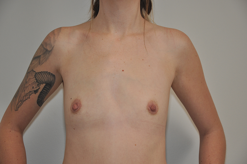 34 year old patient. She is 5′ 7″ and weighs 131 pounds. She had Sientra Smooth Round High projection 350cc implants placed. Photos are pre-surgery and 2 months post surgery.