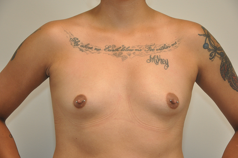 34 year old patient. She is 5′ 7″ and weighs 131 pounds. She had Sientra Smooth Round High projection 350cc implants placed. Photos are pre-surgery and 2 months post surgery.